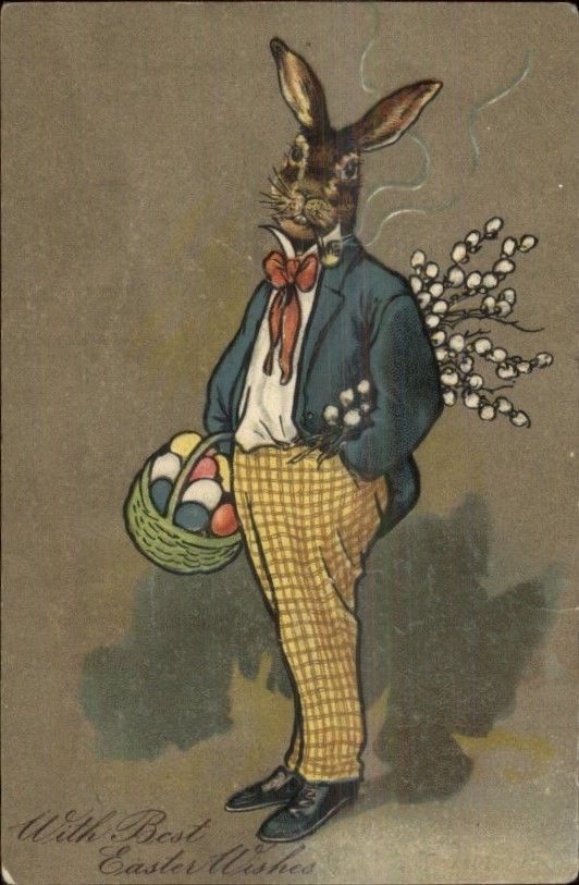 Easter Fantasy - Rabbit in Suit as Man Smoking Pipe PFB Postcard c1910