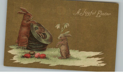 EASTER Fantasy Rabbits in Hat c1910 Postcard