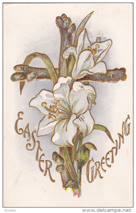 Easter Greeting, White Lily on Cross, PU-1910 :: Postcard, 3.5" by 5.5", Litho, VG+, WOB, CW