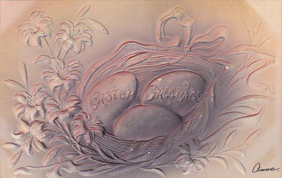 Easter Greetings Basket Of Easter Egg Embossed 1909