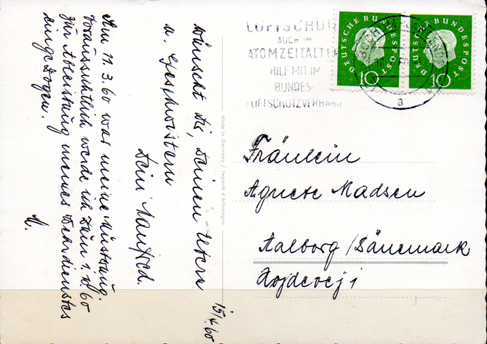 POSTCARD. Easter greetings card, posted to Denmark. Cancelation: "(21b) Bochum - Langendreer 1 16.4.60". (2). Kv.1. LP0330-7b