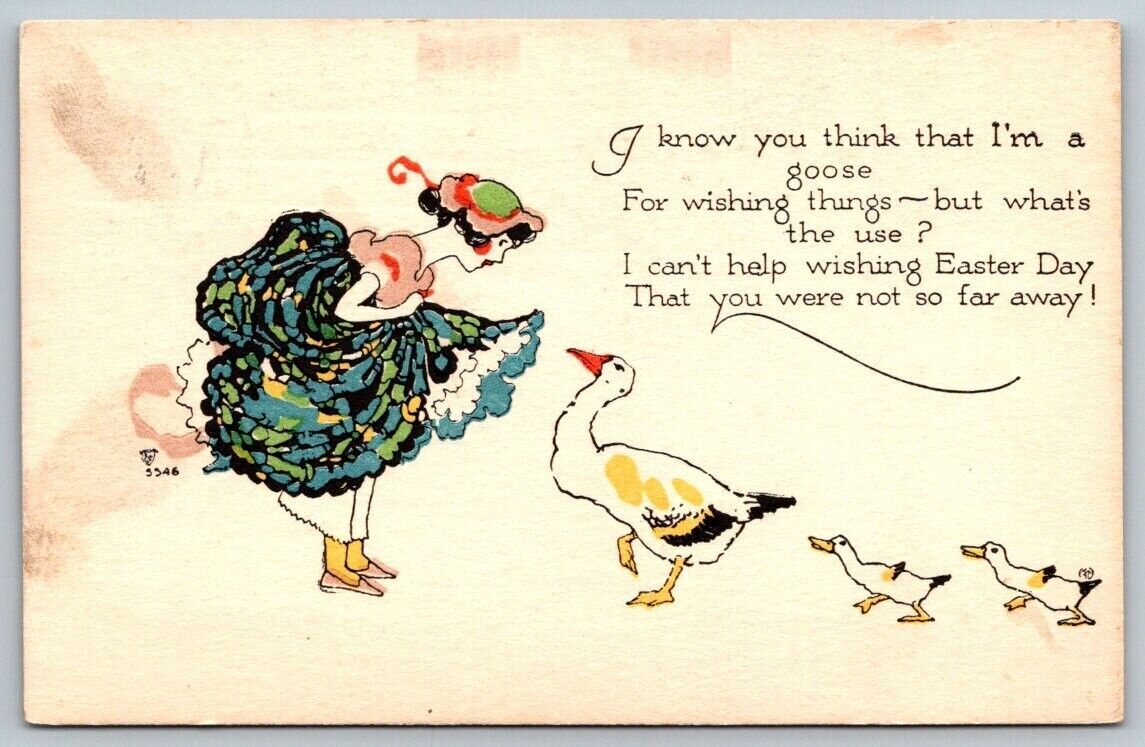 Easter Greetings Mother Goose Postcard 1917