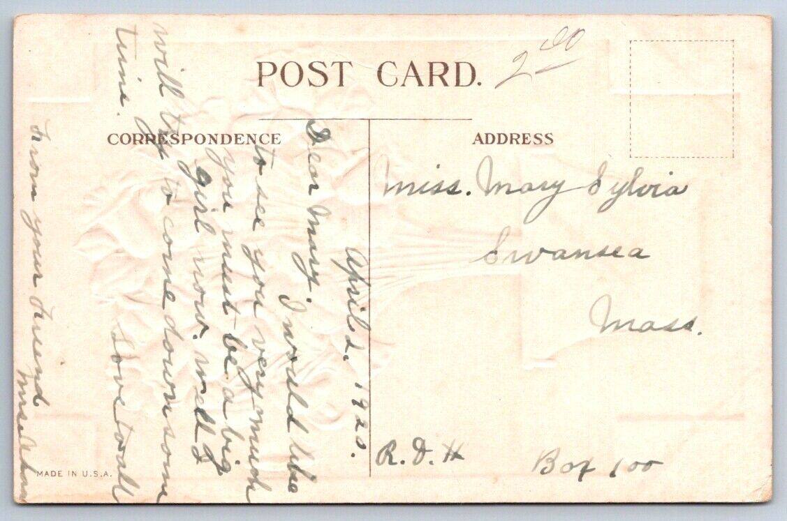Easter Greetings, Potted Daffodils, Antique 1920 Embossed Greetings Postcard
