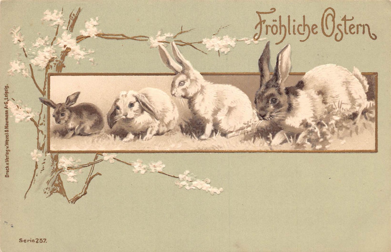 Easter Greetings Rabbits Flowers Tree embossed postcard C317 This item is listed via xdm.it software