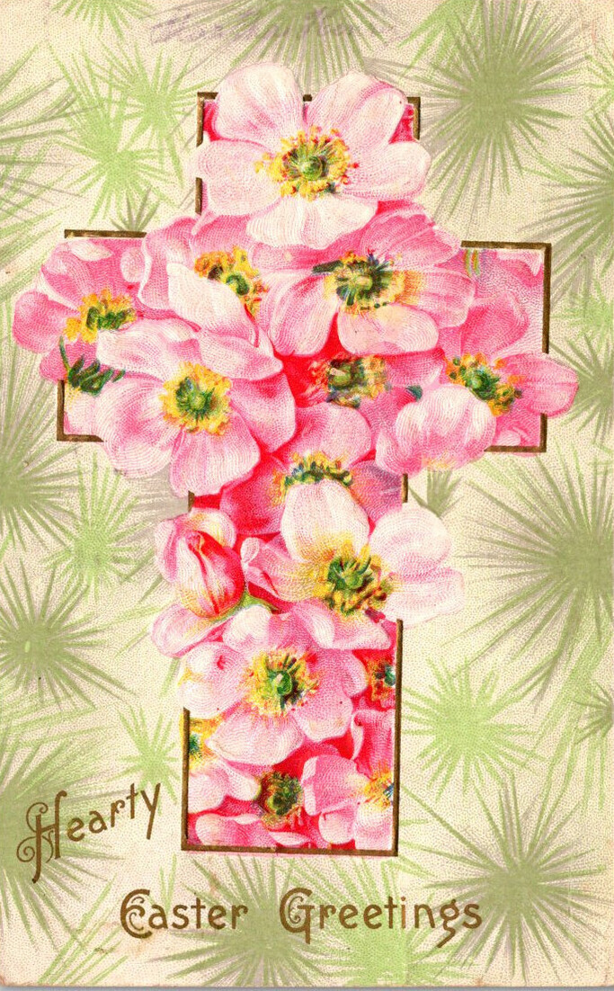 Easter Greetings With Pink Flowers 1911