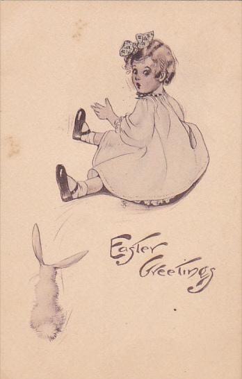 Easter Greetings Young Girl With Rabbit