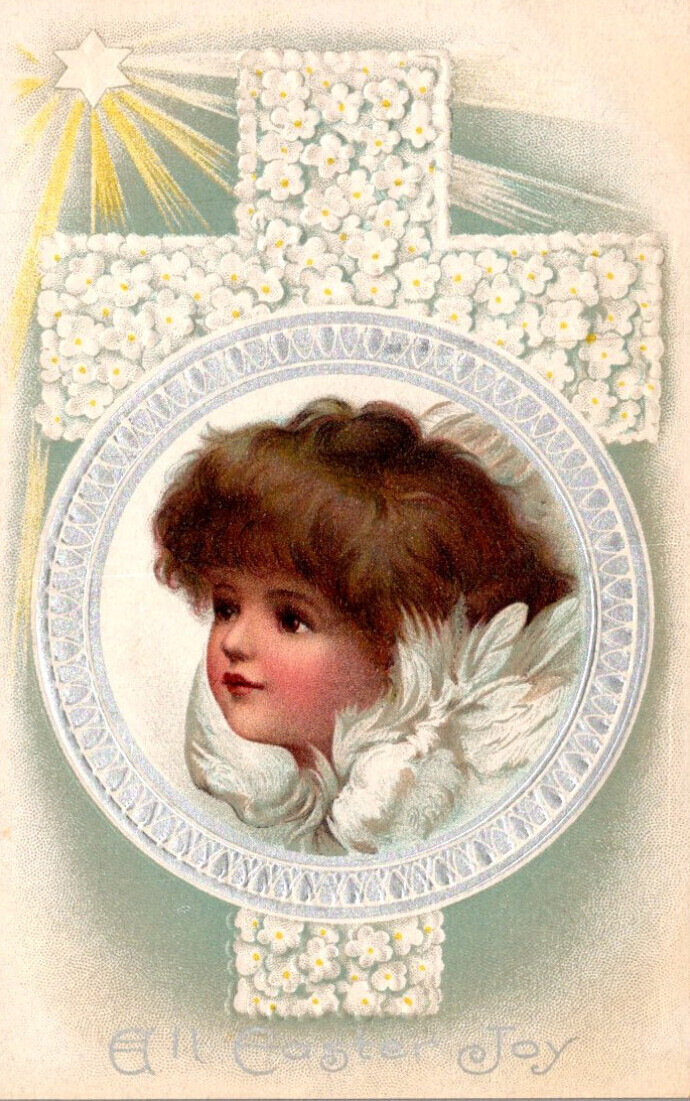 Easter Joy Bautiful Young Girl and Cross