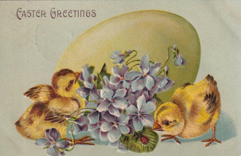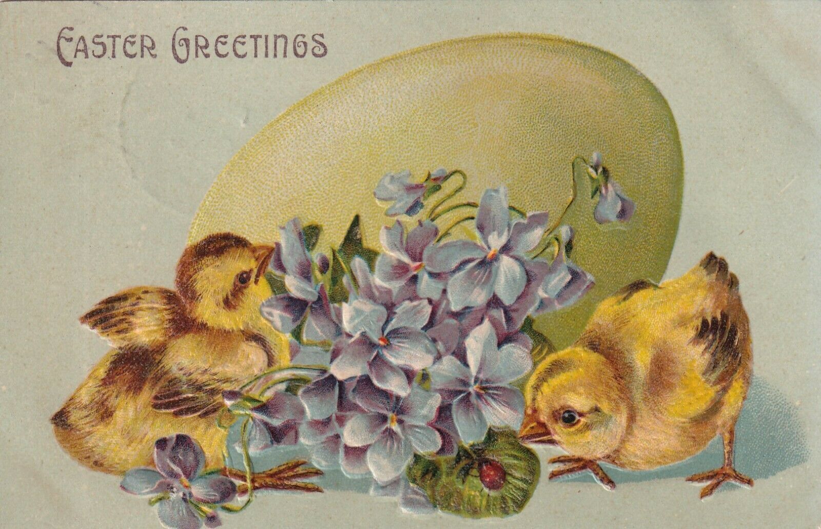 EASTER, PU-1908; Greetings, Chicks, Vioilets, Lady Bug & Big Green Egg
