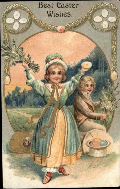 Easter - Well-Dressed Fancy Children Eggs & Flowers c1910 Postcard