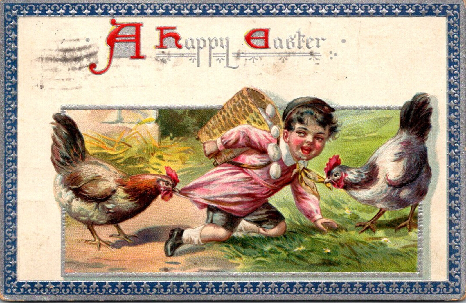 Easter With Chickens and Young Boy Gathering Eggs 1911 Tucks
