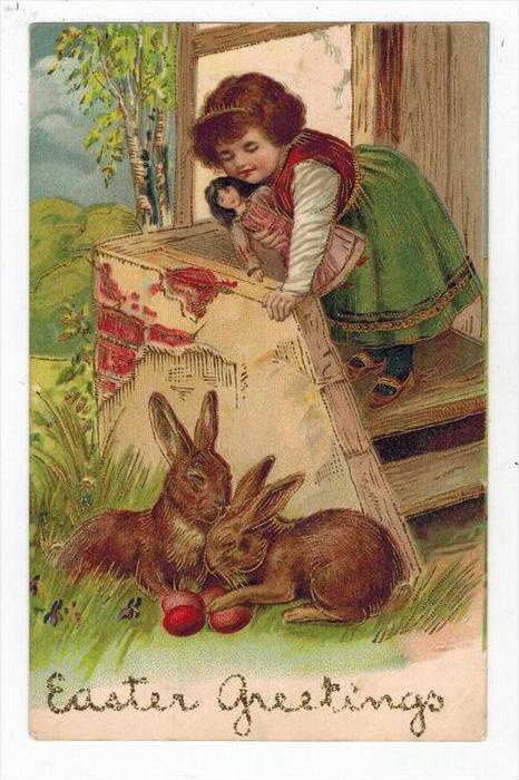 Easter Young Girl with Doll & Rabbits