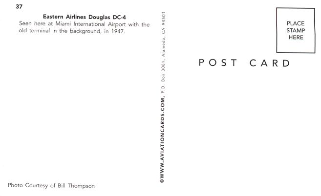 Eastern Airlines Douglas DC-4 at old Miami Terminal.Standard sized chrome card.