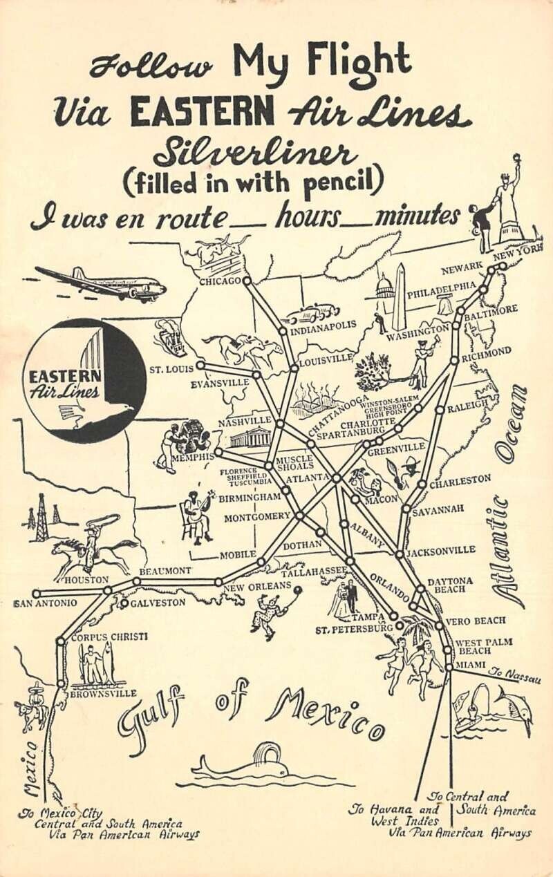 Eastern Airlines Silverliner Flight Path Correspondence Greetings PC AA109928
