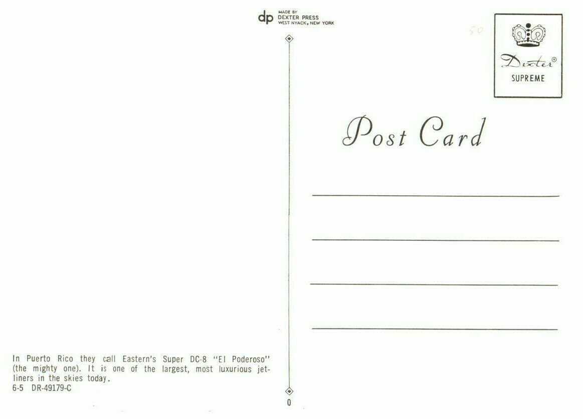 Condition: Pre-owned. May have mild edgewear, typical. Stored well. Some discoloration on the back, typical. Eastern Airlines Super DC 8 Airplane Postcard