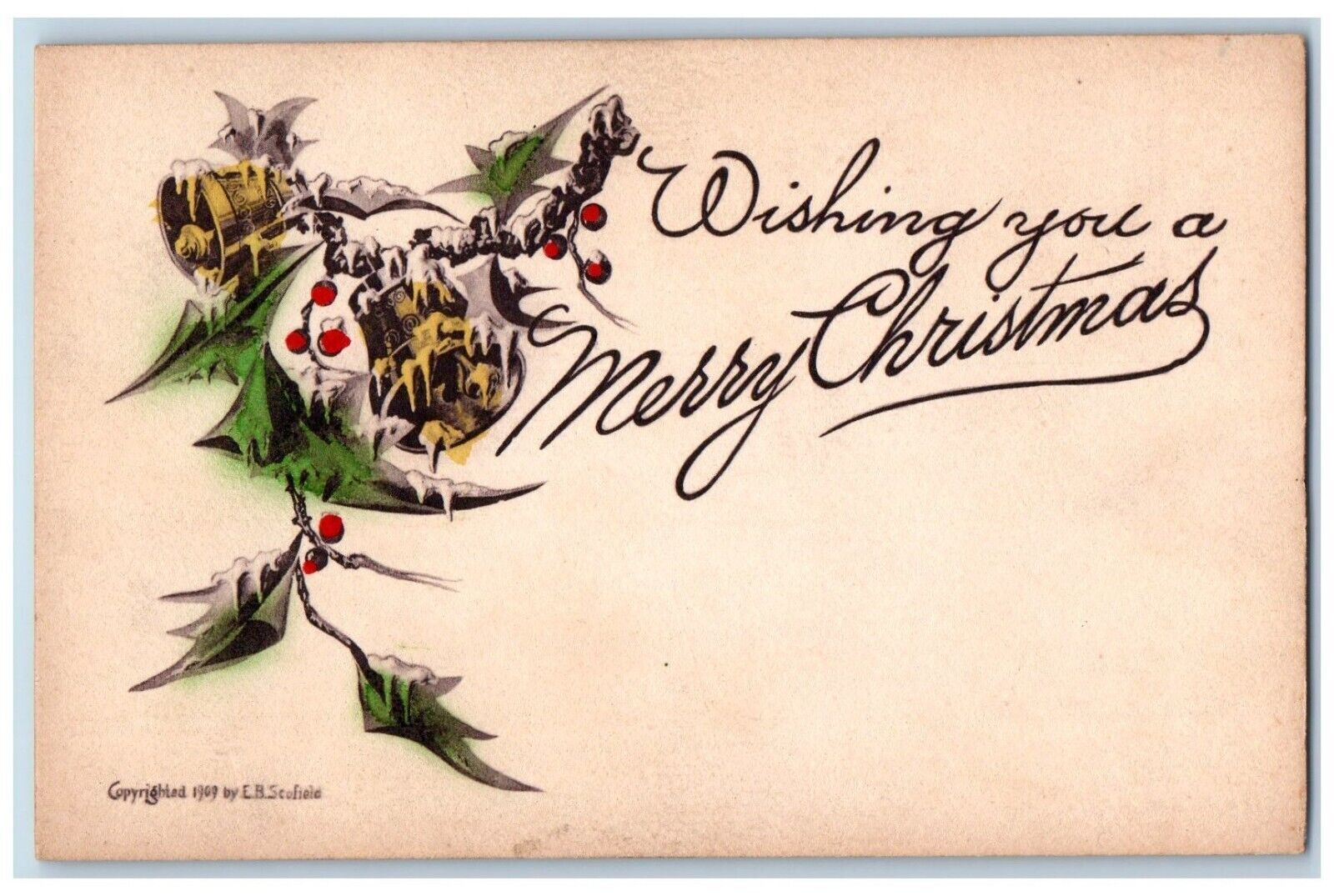 EB Scofleld Artist Signed Postcard Christmas Ringing Bells Holly Berries c1910s
