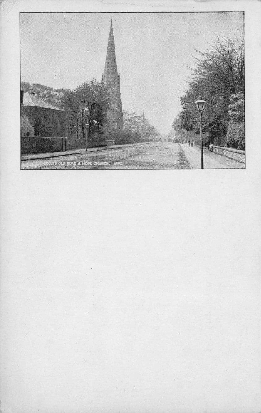 NP150 Antique unusual postcard with this unique small picture of Eccles Old Road on the postcard so the sender could write a long message including on the front too - appears to date circa 1910 unused and truly excellent condition.