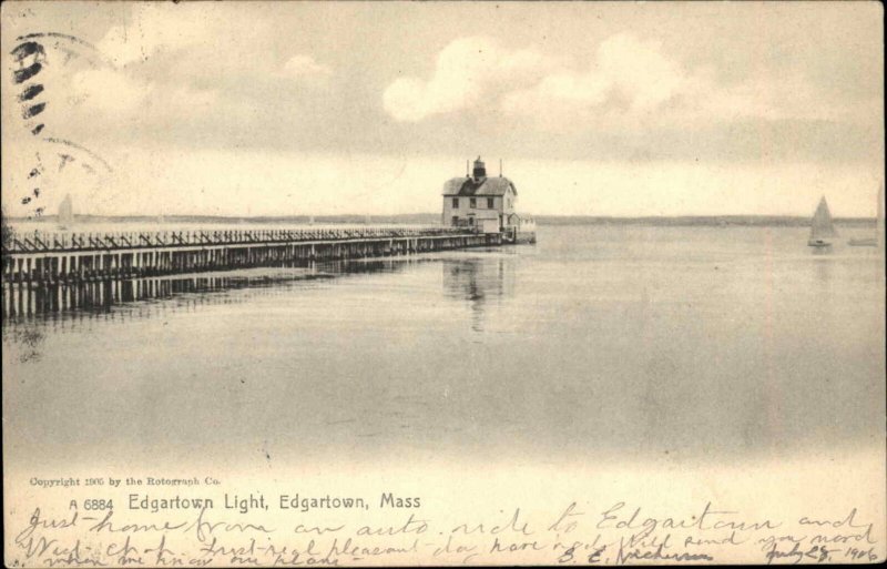 Edgartown Massachusetts MA Cape Cod Lighthouse Rotograph c1910 Postcard