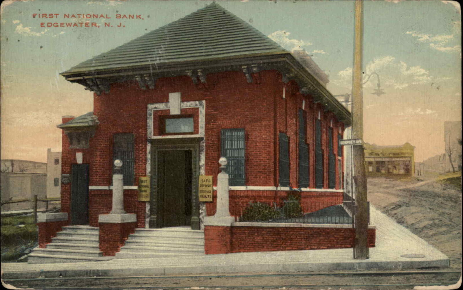 Edgewater New Jersey NJ First National Bank c1910 Postcard
