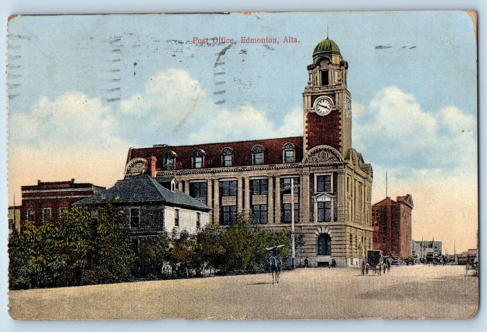 Edmonton Alberta Canada Postcard Post Office Building 1914 Antique Posted