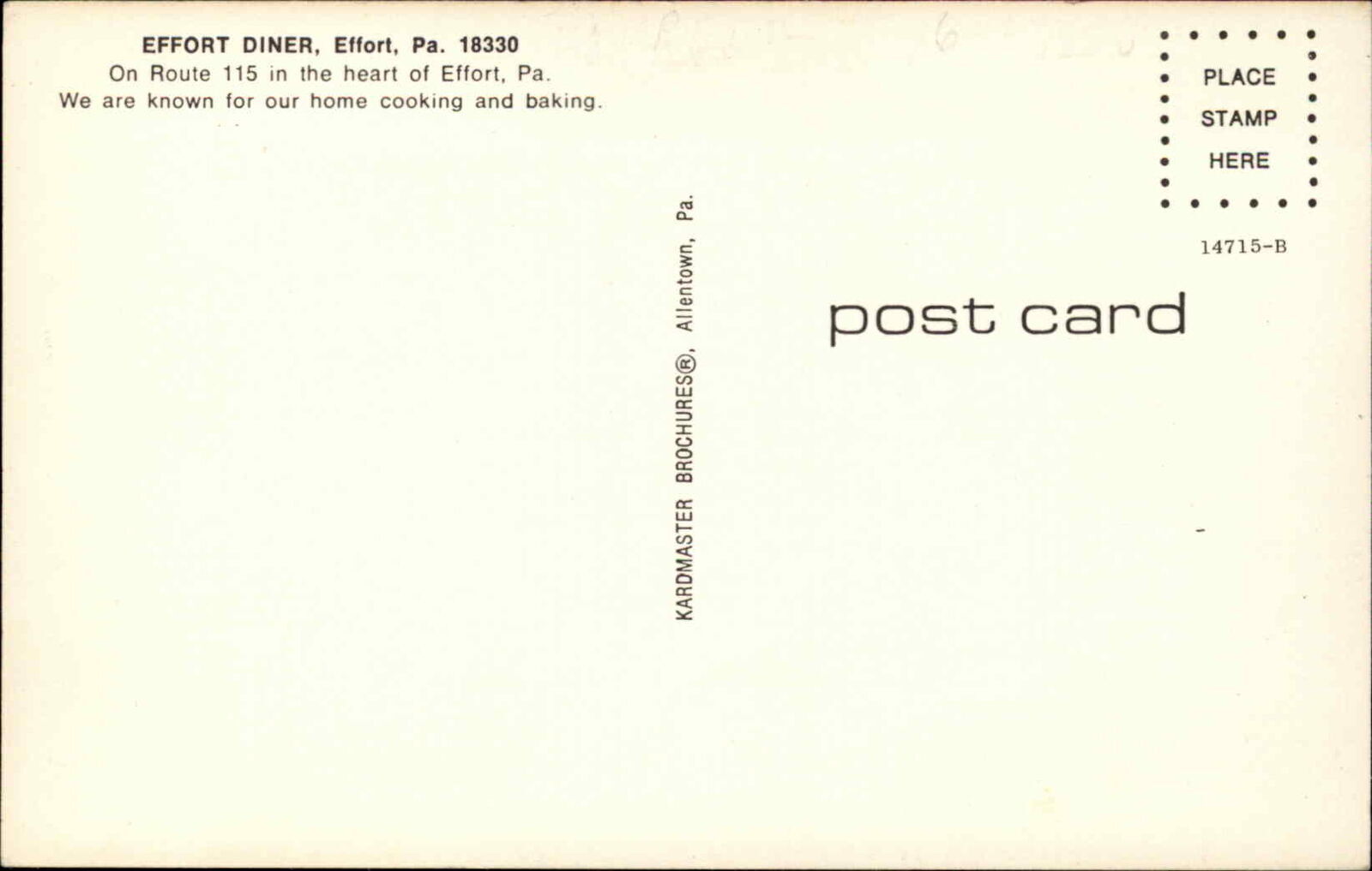 Effort PA Effort Diner Vintage Roadside Postcard