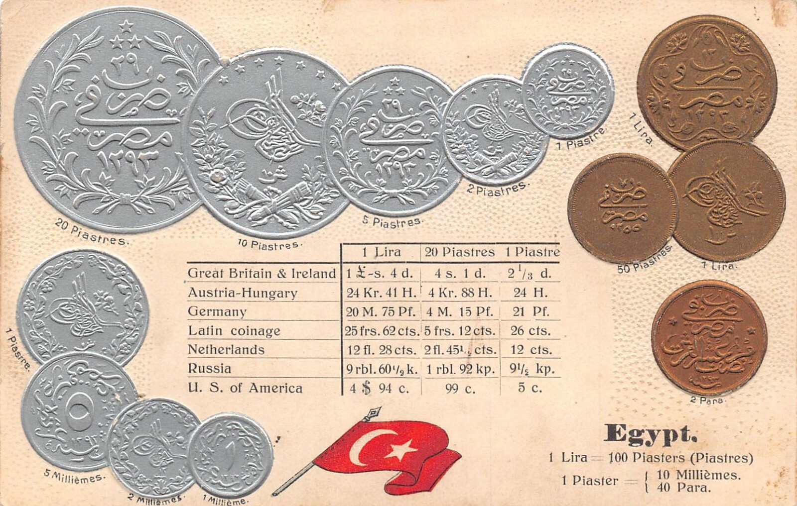 Egypt Exchange Table Flag Coins embossed coinage postcard C315