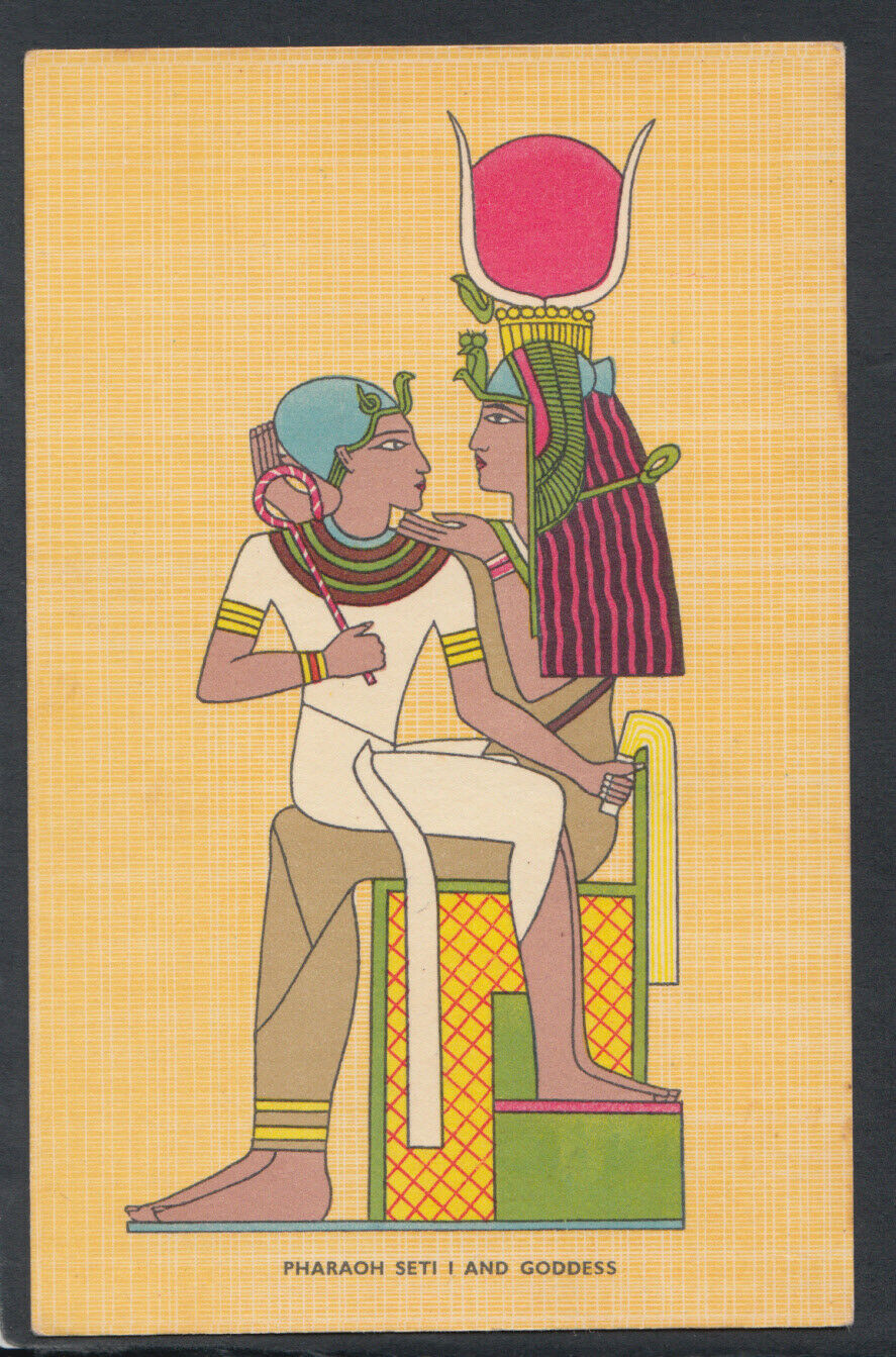 Postcard Description: Egypt Postcard - Pharaoh Seti I and Goddess