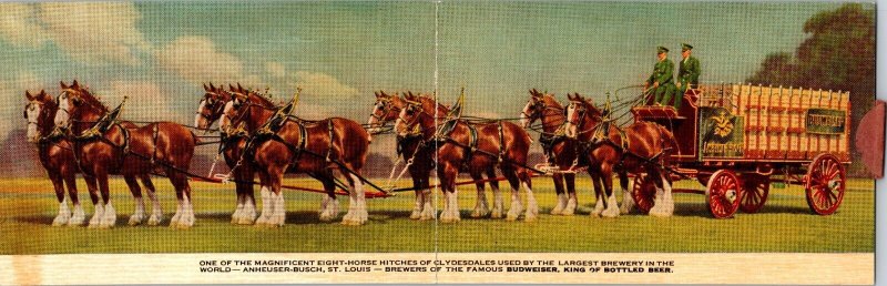 Eight Horse Hitch Anheuser Busch Panorama Folded Gate Fold Postcard