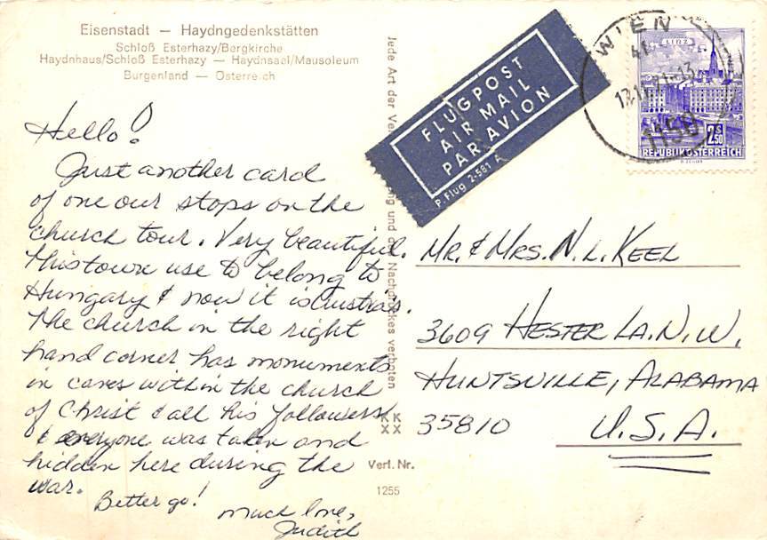 Eisenstadt Haydn , Gedenkstatten Postcard - View Images Grade: 1 Size: C - Continental Size Postcard - approximately 4 inch X 6 inch (15 CM X 10.5 CM) Grading Scale: Grade 1 = Perfect corners Grade 2 = Very Min ... Read More