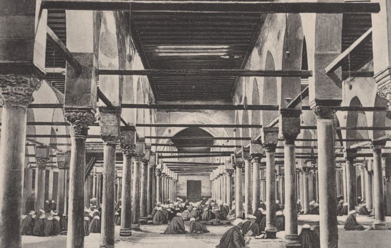 TS261 Antique postcard of the interior of the El Hazar Univerity in Egypt unused and mint.