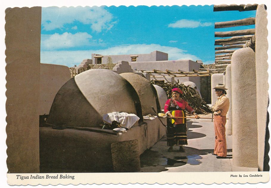 El Paso, Texas - Tigua Indian Reservation - Adobe Bread Ovens. Continental sized chrome card. Postmarked at San Jose CA on January 16, 1978. Good condition - Light creases.