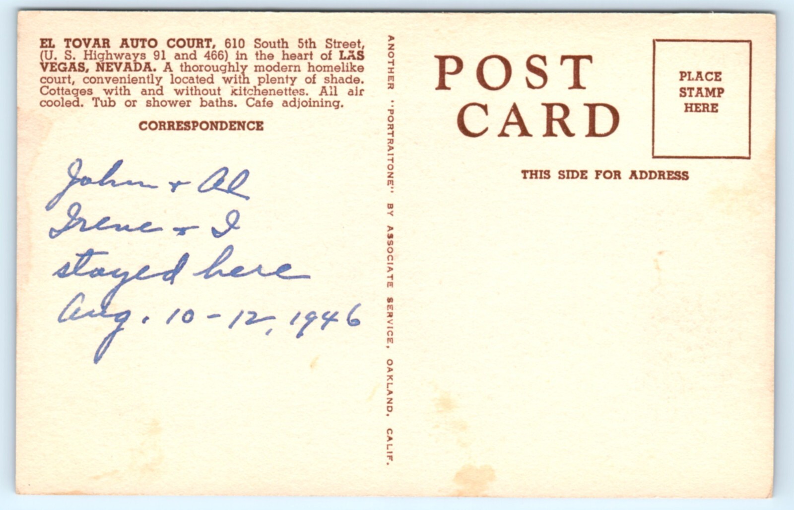 El Tovar Auto Court Montgomery's Restaurant Las Vegas NV Nevada Postcard