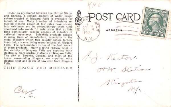 Electric Power Plants Niagara Falls, New York Postcard - 1921 Grade: 2 Size: R - Regular size: Approx 3 1/2 X 5 1/2 inch (9 cm X 14 cm) Grading Scale: Grade 1 = Perfect corners Grade 2 = Very Minimal corner we ... Read More