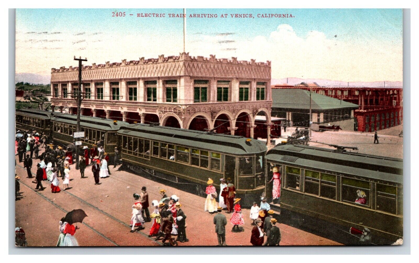 Condition: Normal wear associated with an old postcard it might have creases, a corner bump, ink on the front, Electric Train At Station Long Beach California CA DB Postcard V10Normal wear associated with an old po ... Read More