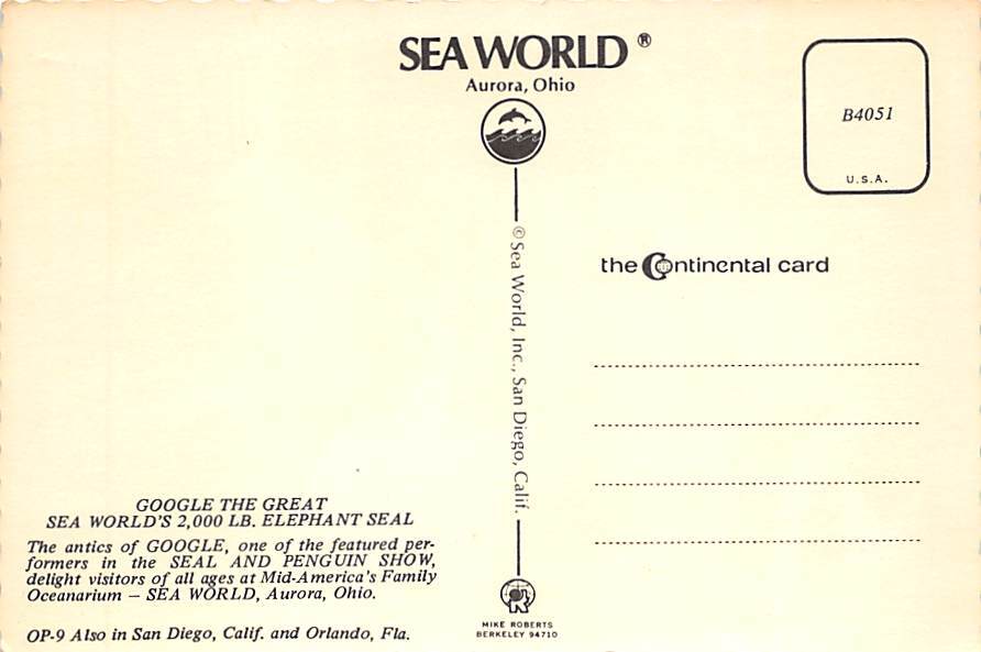 Elephant Seal, Sea World Aurora, Ohio OH Postcard - View back of card