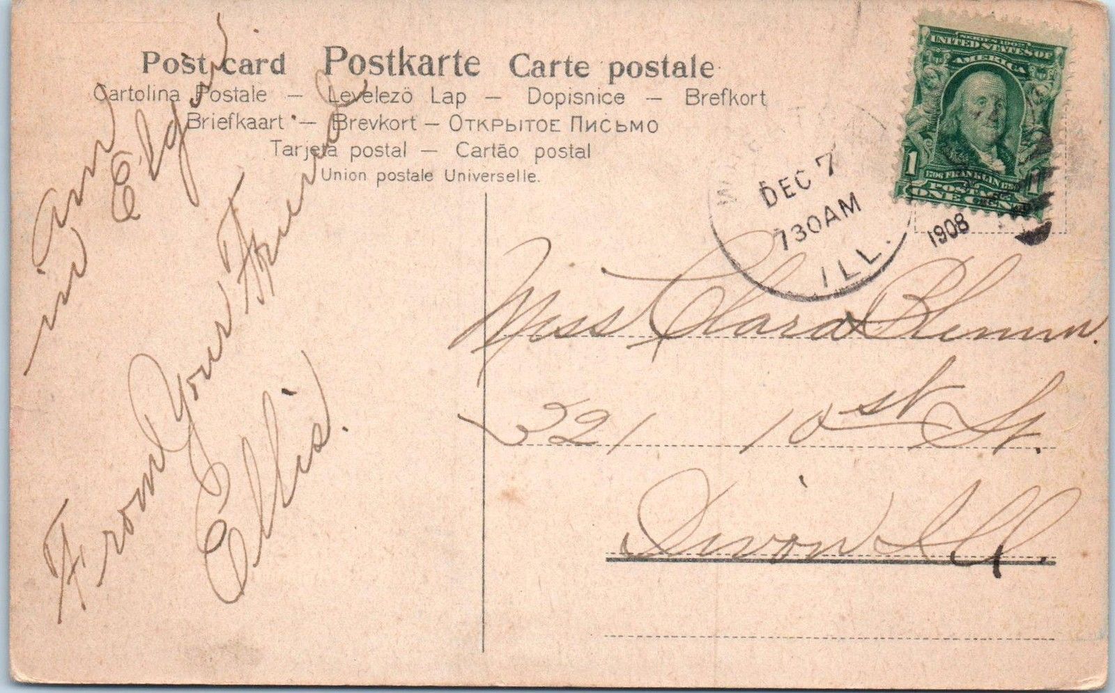 Occasionally postcard backs (usually real photo) will appear yellowed, which is a flaw from my scanner . If there is no staining mentioned in the condition statement, the card is not discolored. Also if odd colored lines appear this is also a scanner defect unless mentioned. Add me to your Favorite Sellers and feel free to email me with questions about item conditions as I try to describe them accurately. Please Visit My Hip Store, new items are added every week.