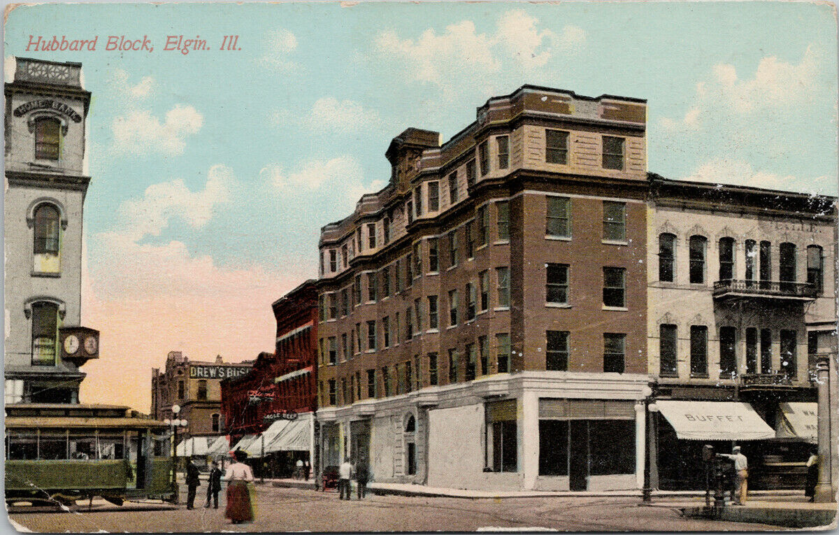 Elgin Illinois Hubbard Block c1911 Dundee IL Cancel Postcard G58