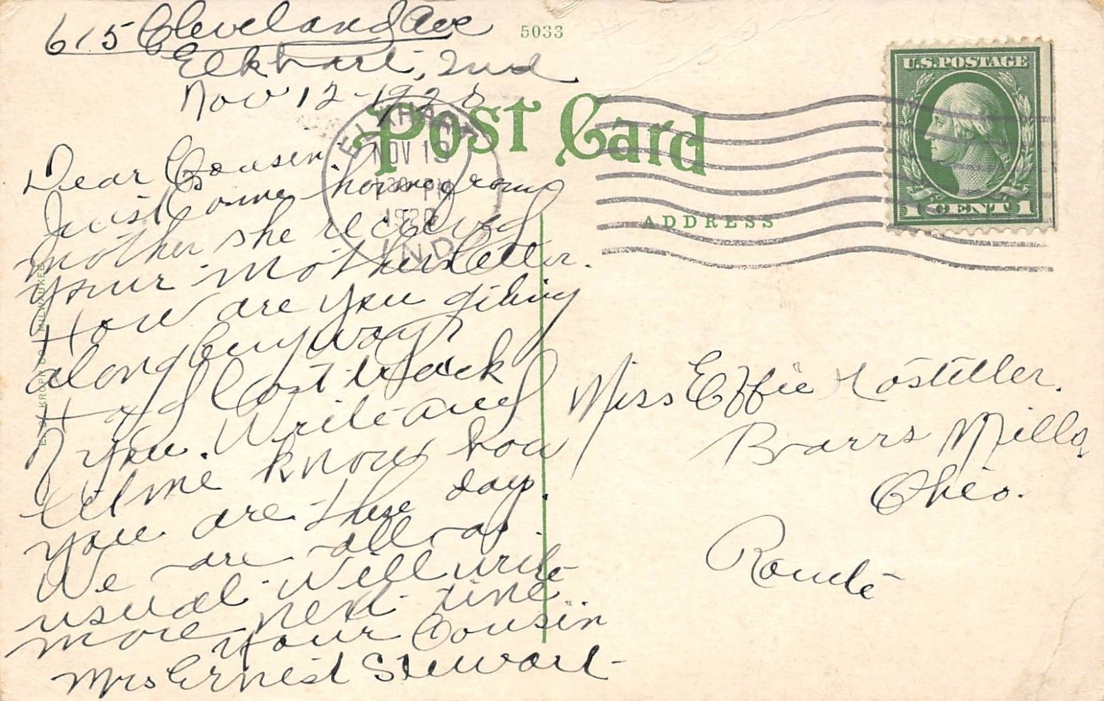 Elkhart Indiana 1920 Postcard High School
