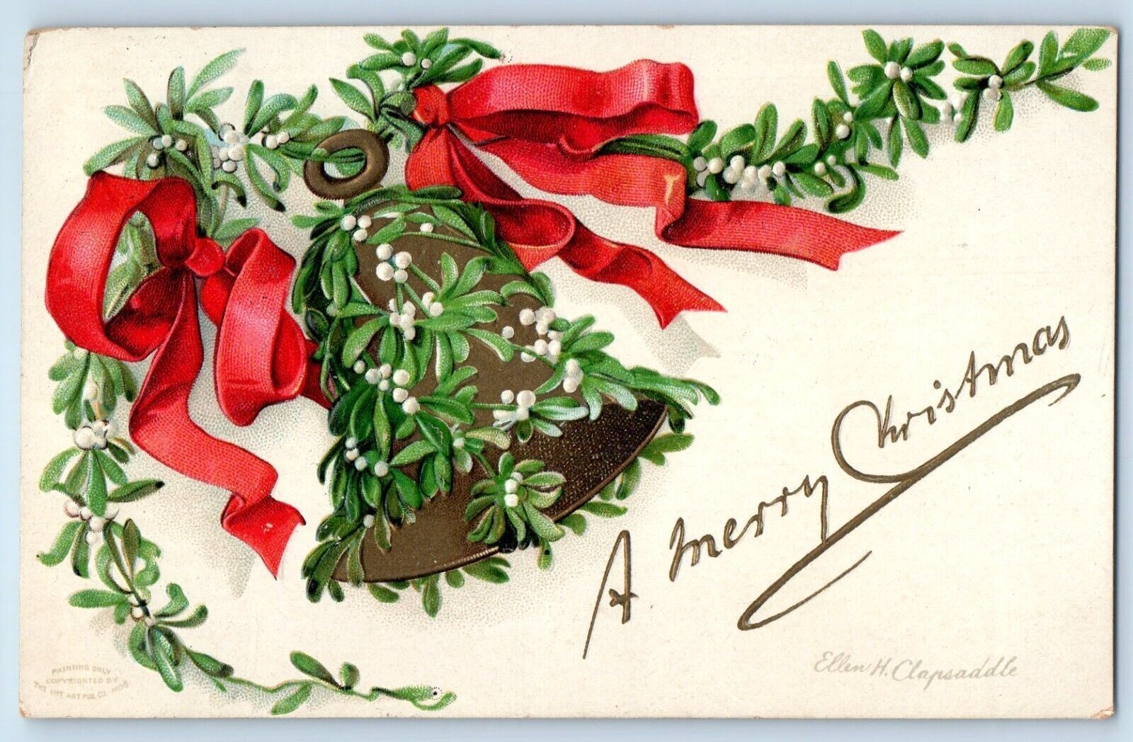 Ellen Clapsaddle Signed Postcard Christmas Ringing Bell Mistletoe Swampscott MA