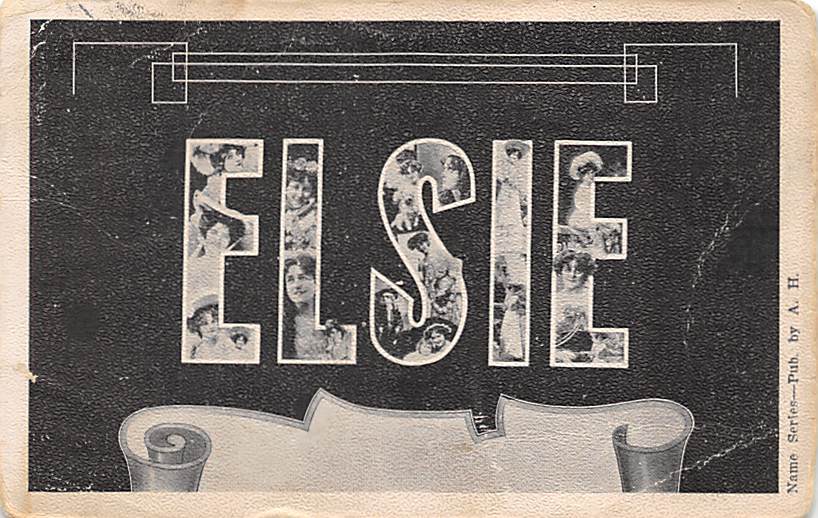Elsie Name Postcard 1912, missing stamp, Grade: 5 - missing top left corner, , Size: Regular Size Postcard - approximately 3 1/2 inch x 5 1/2 inch (9 CM x 14 CM) Grading Scale: Grade 1 = Perfect corners Grade 2 ... Read More