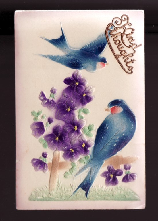Embossed Blue Birds Kind Thoughts Picture Postcard!