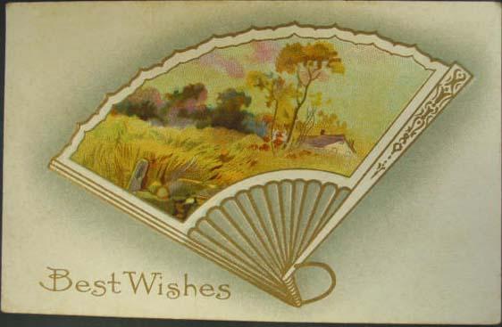 Embossed Fan w House Scene c1910 Postcard