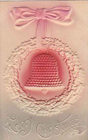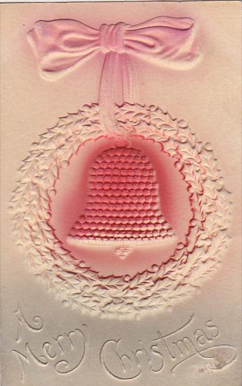 Embossed Merry Christmas Red Bell In Wreath 1907