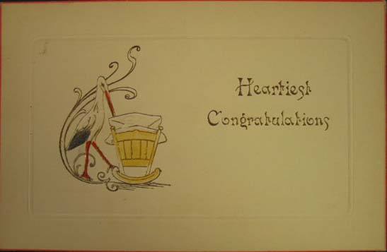 Embossed Stork Baby Birth Announcement c1910 Postcard