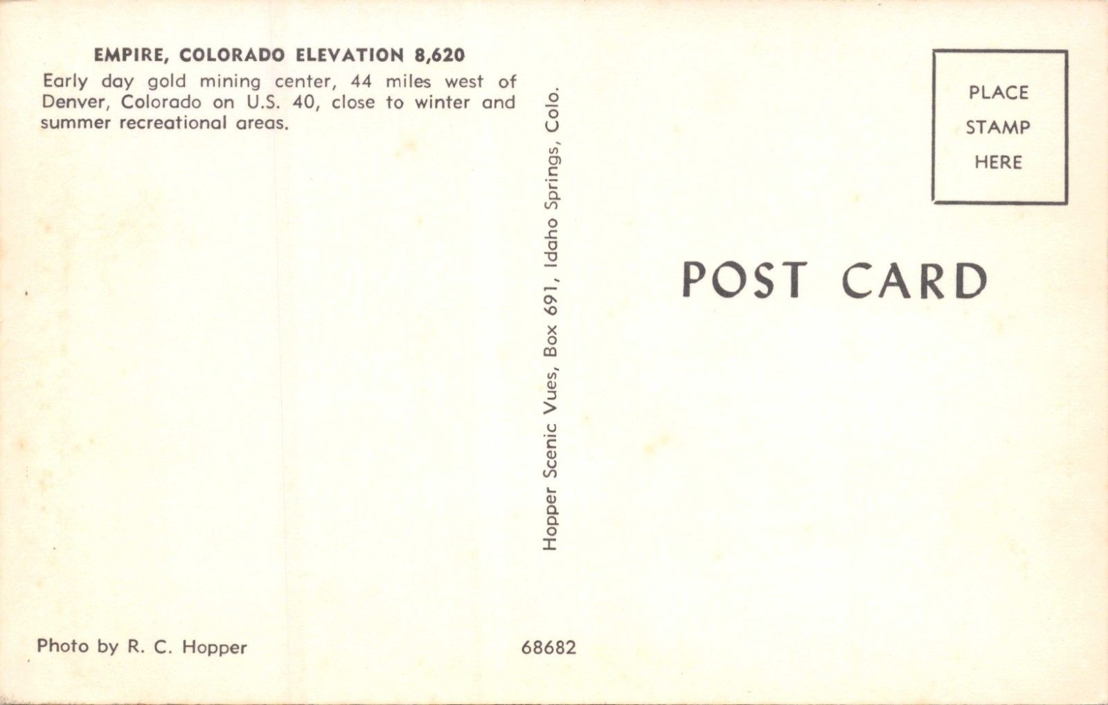 Empire colorado-early gold mining center-elevated view postcard 1960s