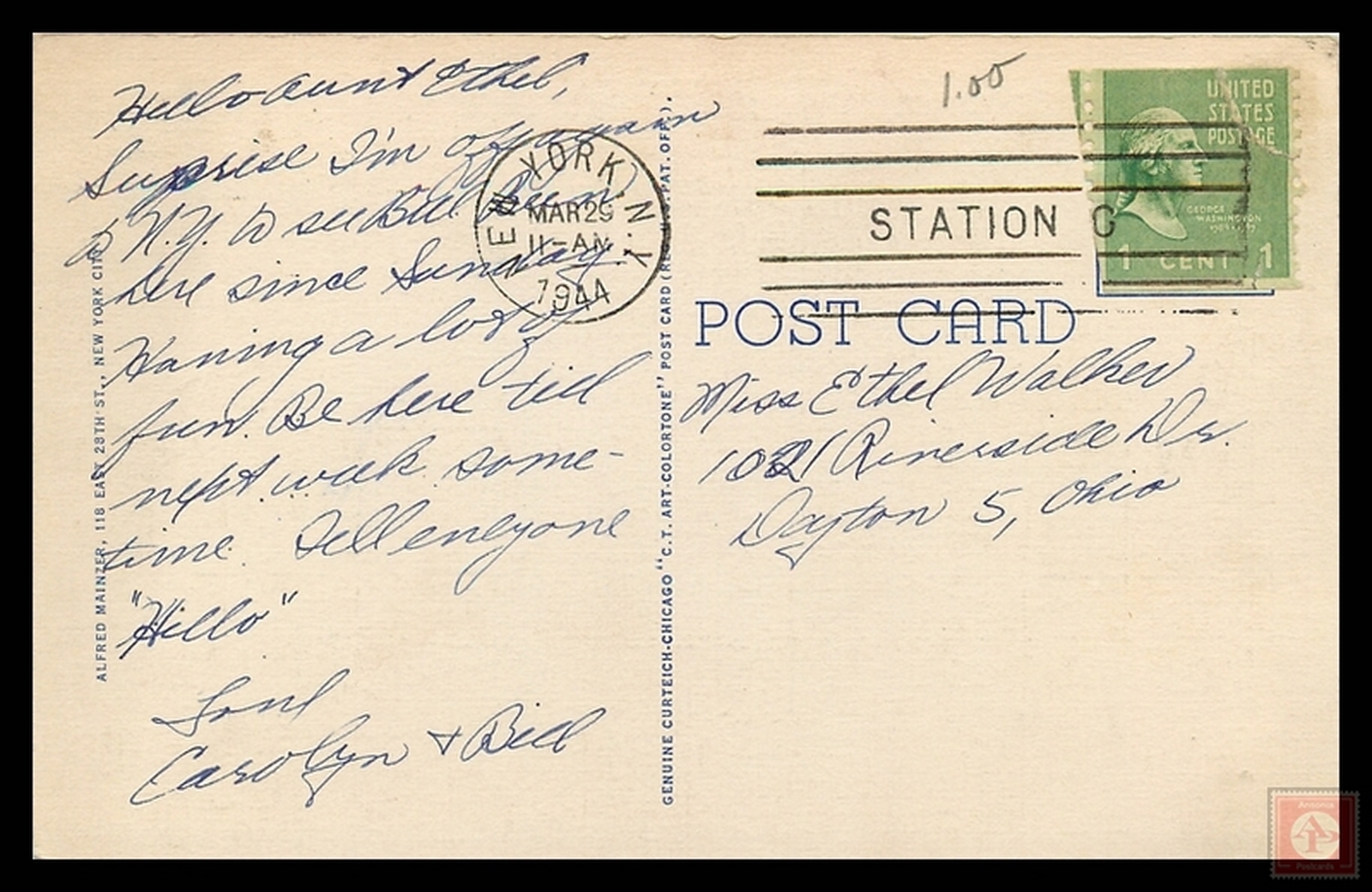 Some scans of postcards result in colored streaks which are a result of the error in scanning and not a fault of the postcard.