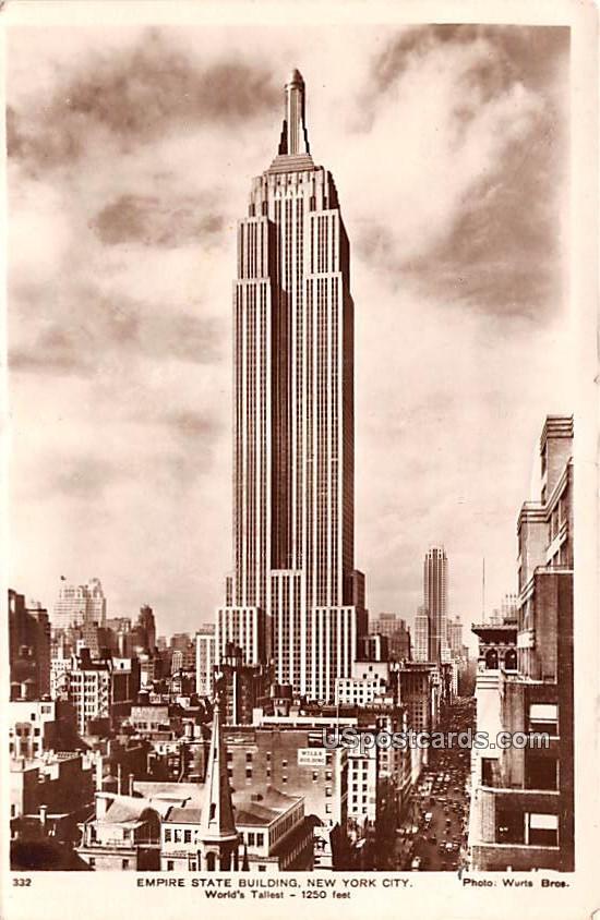 Empire State Building - New York City, NY Postcard - 1932 Grade: 2 Size: R - Regular size: Approx 3 1/2 X 5 1/2 inch (9 cm X 14 cm) Grading Scale: Grade 1 = Perfect corners Grade 2 = Very Minimal corner wear, ... Read More