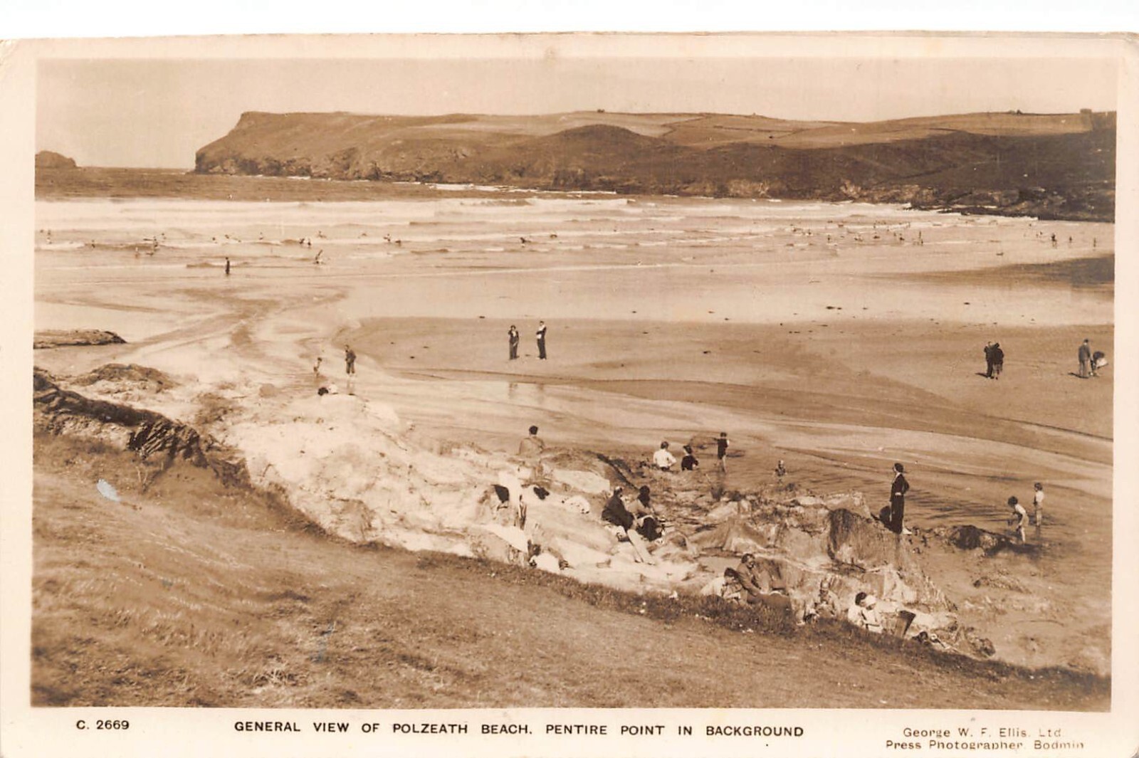 England General view Polzeath Beach Pentire Point RPPC postcard C319 This item is listed via xdm.it software