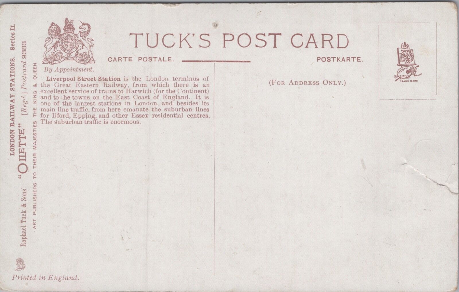 England Liverpool Street Station Vintage Postcard C364