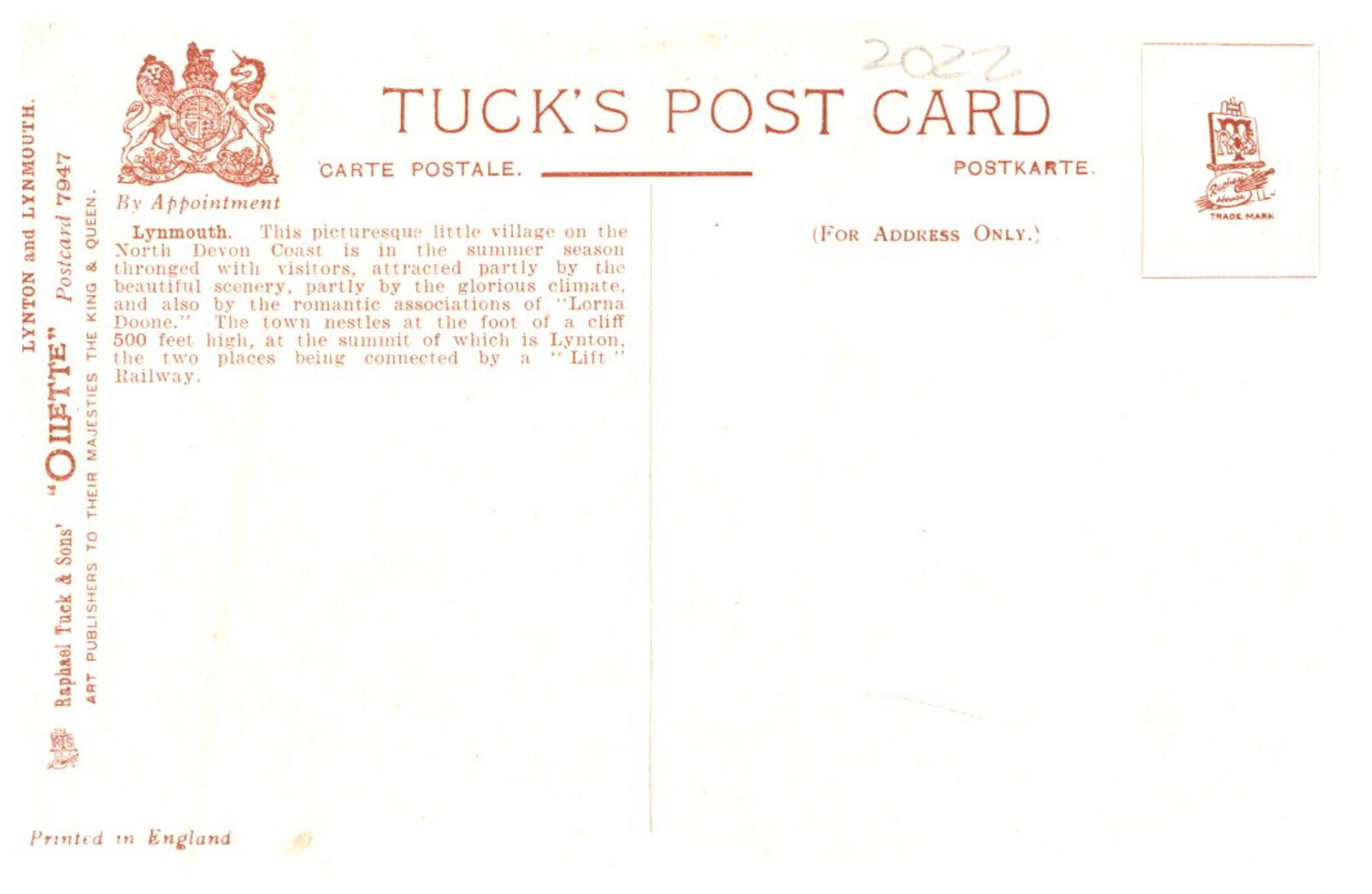 England Lynmouth Tuck's 7947