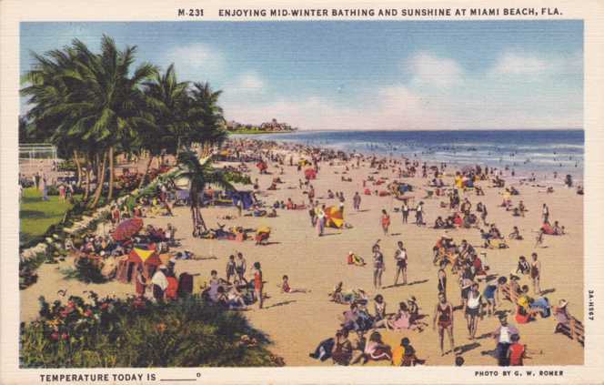 Enjoying mid-winter Bathing and Sunshine Miami Beach Florida